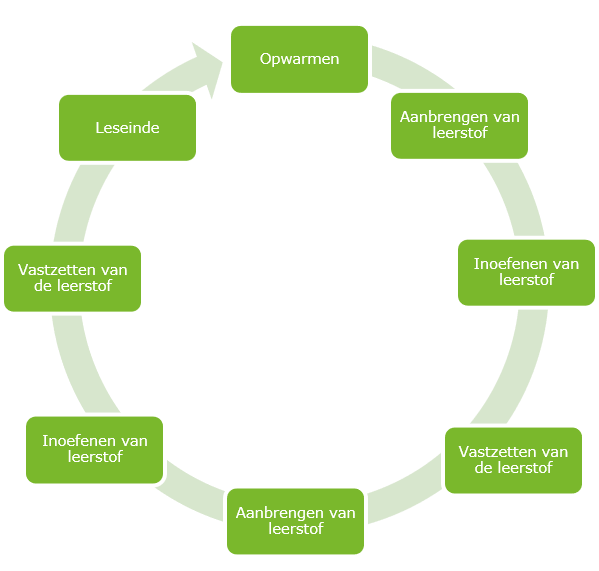 Om voldoende variatie in je online les te brengen is het immers belangrijk dat je nagaat welke extra tooltjes of online materialen ondersteunend kunnen werken bij je lesfase. Probeer minstens bij één of twee stappen uit de afgebeelde cirkel gebruik te maken van een online tool. Het zorgt voor afwisseling in de les en bouwt kansen tot interactie in. Beide elementen verhogen de leermotivatie voor je les.
