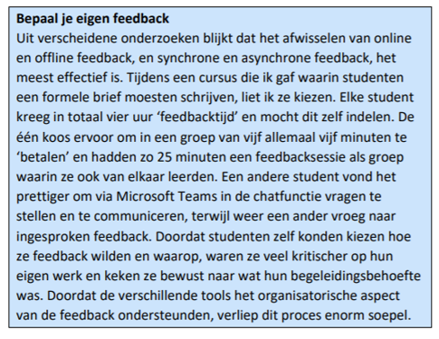 - Voorzie feedback. Zie hiernaast een getuigenis van Irene Van Der Spoel (Today's Teaching Tools).